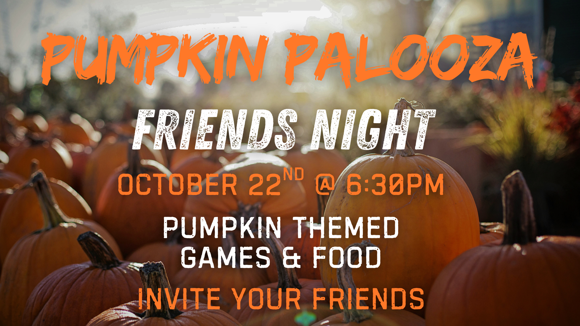 On October 22nd, our youth group will be hosting an event for anyone in grades 6-12 down at our church to hang out. We will be having a variety of games and different activities for teenagers to have fun and hangout that are based on Pumpkins. The night starts at 6:30pm and will end at 7:45pm.