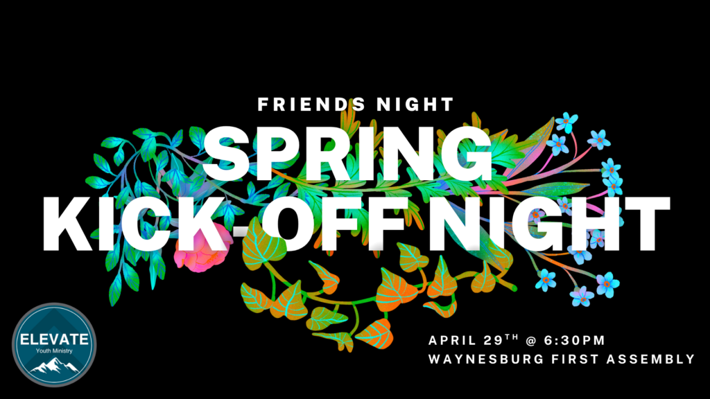 On Wednesday, April 29th, students are invited to a special Spring Kickoff Friends Night as we head into a new season. The evening will include group games, time to hang out in the gym, and—if the weather allows—some outdoor activities. We will meet from 6:30pm-7:45pm.